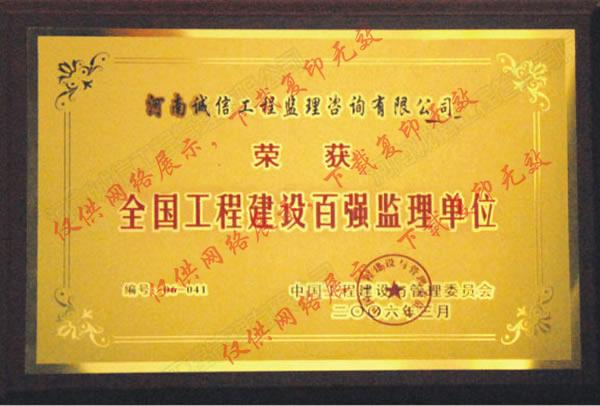 榮獲“全國工程建設(shè)百強監(jiān)理單位”